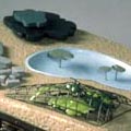 manipulated landscape, the golf course, in miniature scale. Beyond